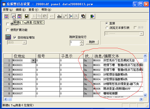 謝謝樓上,報警編輯器我會用了,我上傳的那個文件內的報警,不知道他是怎么搞的。用位報警的我明白,字的地址指定還不明白。學習中