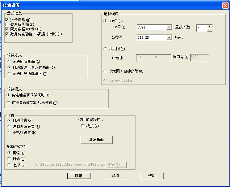 小弟我近來遇見了一個問題,公司的一塊Pro-Face GP2500觸摸屏近期出現了主板內部故障,屏不能正常啟動,經過維修后,發現部分程序已經丟失。我將原程序打開準備往維修好的觸摸屏里下載程序過程中出現了一些問題,在程序下載完成的時候我發現觸摸屏中的畫面并沒有變化。我懷疑是不是: Transfer-Setup-Transfer Setting中的一些設置項沒有設置好:現請問各位大俠,Transfer-Setup-Transfer Setting的設置項應該怎么來設置: