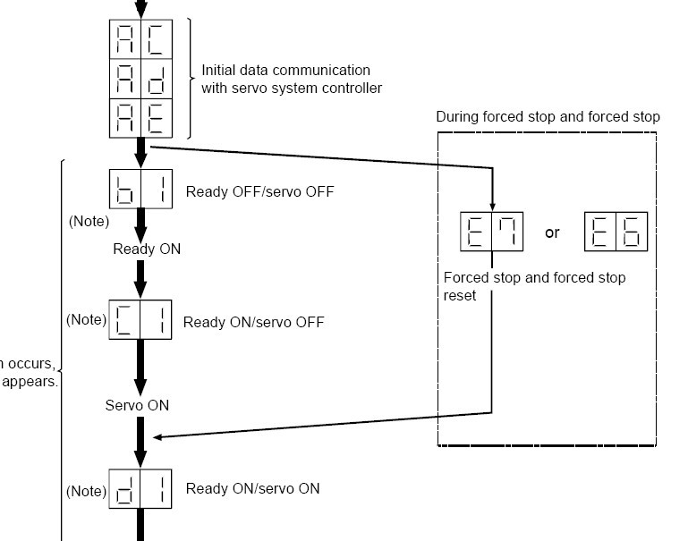 這是MR-J2S-100B的說明書上寫的開機的一個自檢到運行的過程, 顯示步驟為:AB-AC-AD-AE-B1-C1-D1-AA 但我這四臺伺服器(是先后壞的)都是自檢到B1的時侯,就過不去了,CRT就報警了,換一臺好的,就自檢通過了,確定接線沒問題。 所以想再請教一下,這個問題怎么處理呢? 謝謝,在線等中。。。