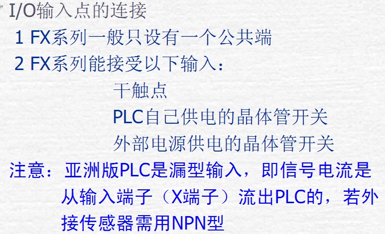 你指的是晶體管的PLC.晶體管輸出分PNP和NPN型。一種是源型,一種是漏型 就是說一個是提供電流的 一個是接受電流的。因為亞洲版的三菱PLC是源型的(PLC分源型和漏型)所以輸入傳感器要采用NPN型,簡單的講 PNP型COM接0V,NPN型COM接24V.