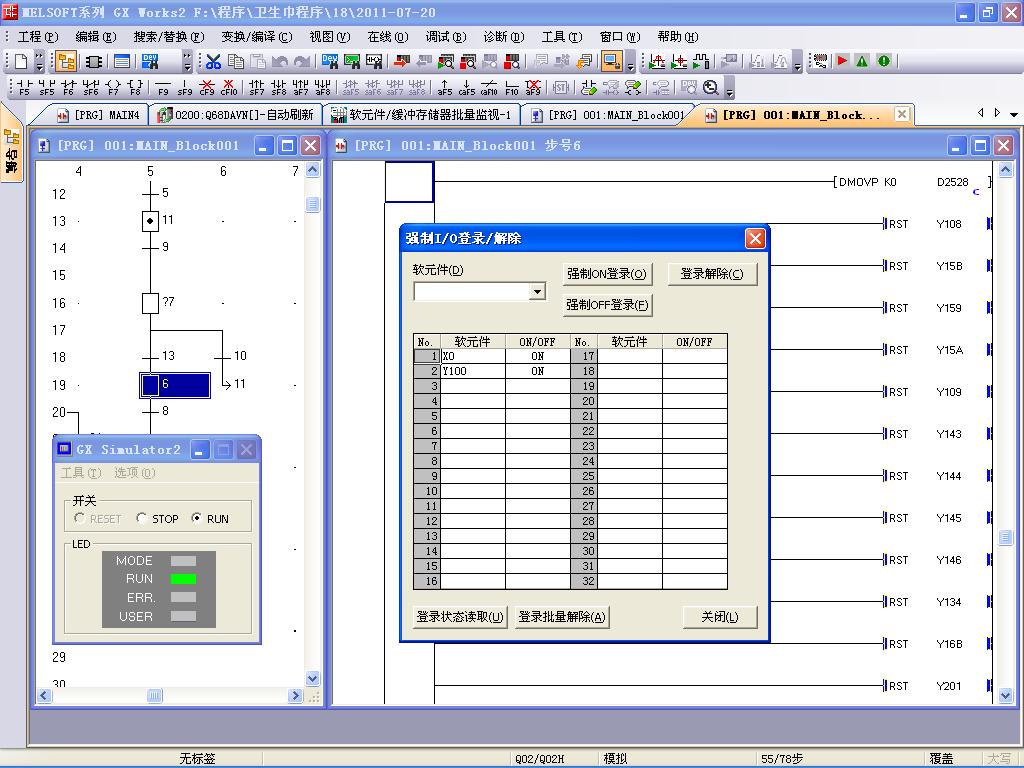 你的是當前值更改,X Y 在GX work2 不是在當前值改變的,要在強制 I O |
