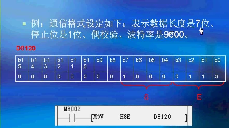 H8E是根據通迅要求進行設定的(H表示8和E是十六進制數),8轉為二進制為1000,表示將b7位設為1(有效);E轉為二進制為1110,表示將b3、b2、b1設為1(有效),你的截圖好像E的轉換有誤