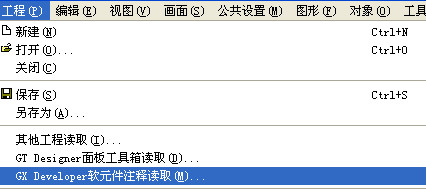 如圖所示,在軟件的工程下拉菜單中“GX  DEVELOPER 軟元件注釋讀取”,有何含義,如何使用?試著導入了.wcd文件好像沒發(fā)現(xiàn)觸摸屏程序有任何變化,期望解答,謝謝!