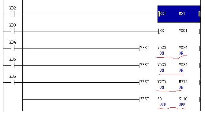 在程序監控狀態時,就是會把軟元件的觸點、線圈ON,OFF或字元件的當前值顯示出來,不然你怎么看程序執行時的軟元件狀態的變化。