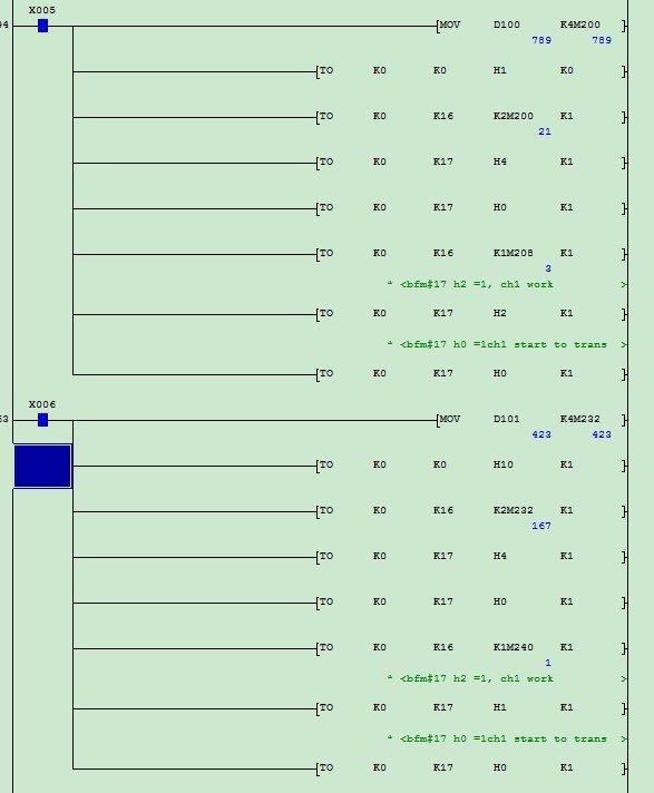 請(qǐng)大家?guī)蛶兔?我在做一個(gè)FX2N_2DA。的配置位置0,想讓 通道1 發(fā)送電壓信號(hào)通道2發(fā)送電流信號(hào)。請(qǐng)問我這樣寫正確么 感謝啊,另外怎么用一個(gè)通道 同時(shí)發(fā)送電流跟電壓信號(hào),看到有的帖子說可以啊  再次感謝啊