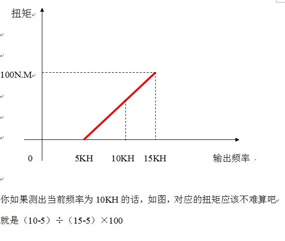 我的理解,首先要確立兩個原則:1,計數(shù)方式要用采樣計數(shù);2,扭矩儀的量程和輸出是線性的比例關(guān)系,也就是0扭矩時對應(yīng)的輸出頻率是5KH,100扭矩對應(yīng)的頻率是15KH。鑒于以上兩個原則,采樣計數(shù)可以得出當(dāng)前的輸出頻率,這樣可以算出對應(yīng)于零點(diǎn)的比率,可以算出當(dāng)前扭矩。比如測出當(dāng)前頻率8KH,那么(8-5)/(15-5)*(100-0),結(jié)果即為當(dāng)前扭矩值