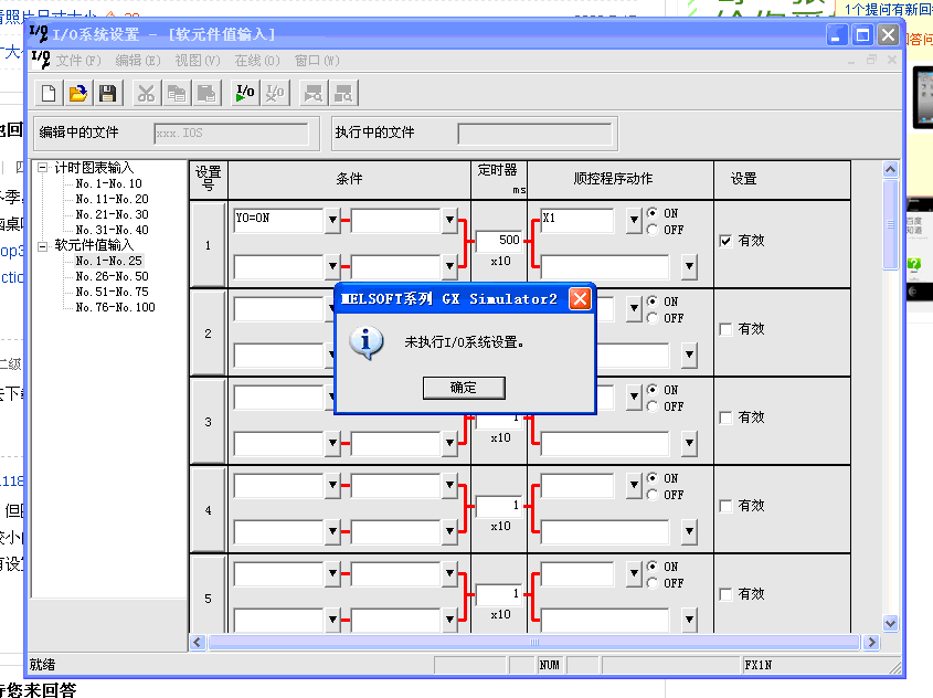 在用GX WORKS2做仿真時,點擊執(zhí)行I/O設(shè)置后出現(xiàn)如下畫面: