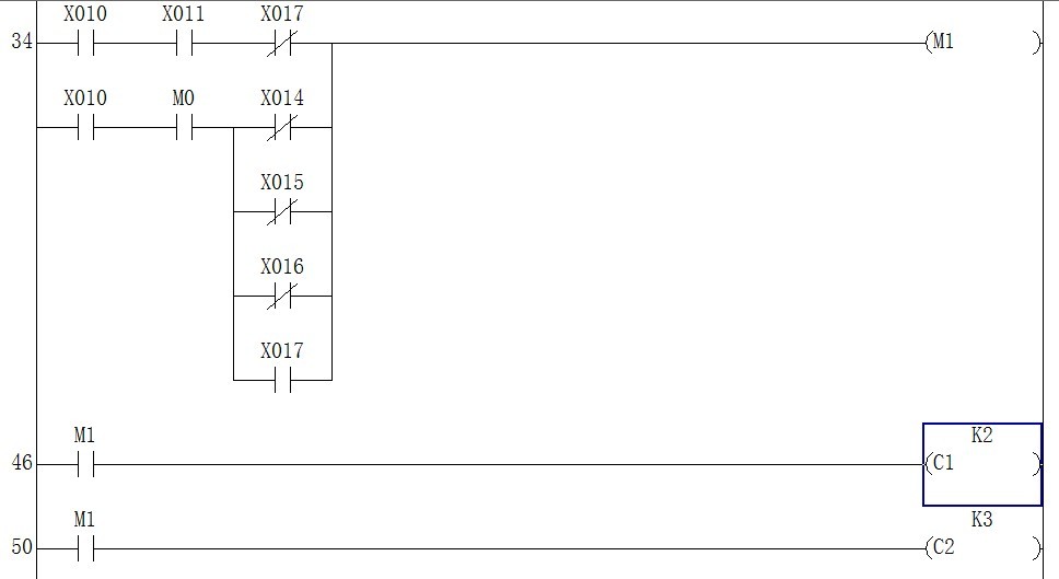 我想編一個挑不良品的程序!不良品觸發(fā)信號為M1   不良品踢出氣缸Y5!  兩者之間還隔了1個產品!不良品踢出Y5磁性開關為X13!我自己編了一下,只會編一個不良品的!連續(xù)兩個三個不良品就不知道到怎么編寫了!求各位老師們教教!我的郵箱:lifanghao521@qq.com  謝了 哦對了,M1觸發(fā)后記數磁性開關為X5