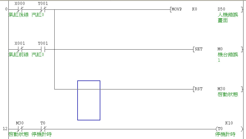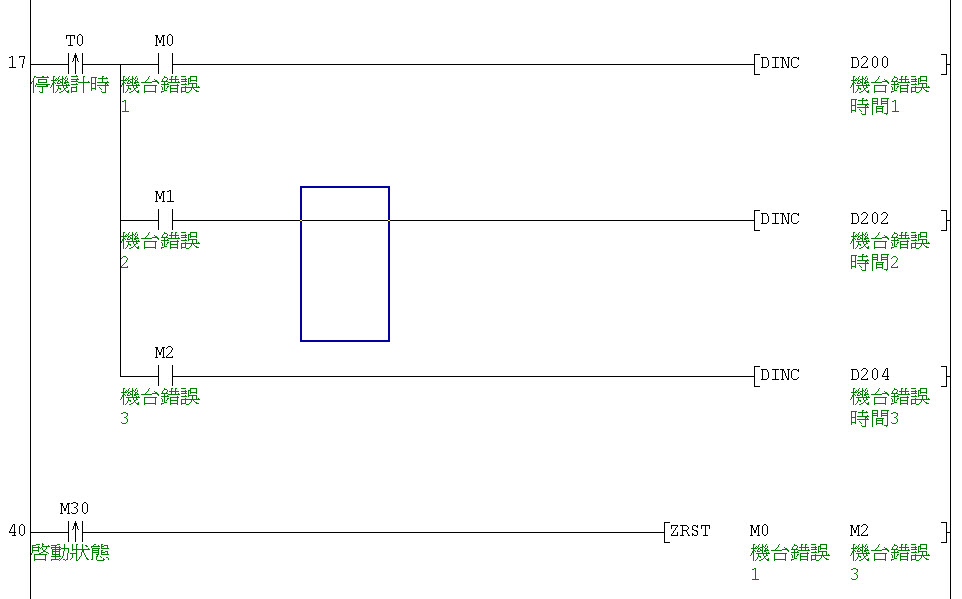 請教各位大師們,目前我正在寫一個停機(jī)時or跳錯誤停機(jī)時會有一個計時的程序如下,