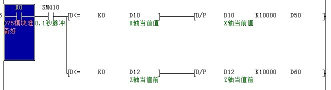 知道的告訴下啊,主要問題是D10在里面是干什么的,在程序其它位置也沒有,是不是應該有初始值?注釋是X軸當前位置,但這個位置不是應該實時從模塊中提取嗎?還有后面除以10000有什么用?真迷惑了。