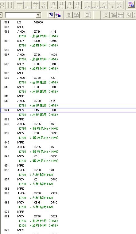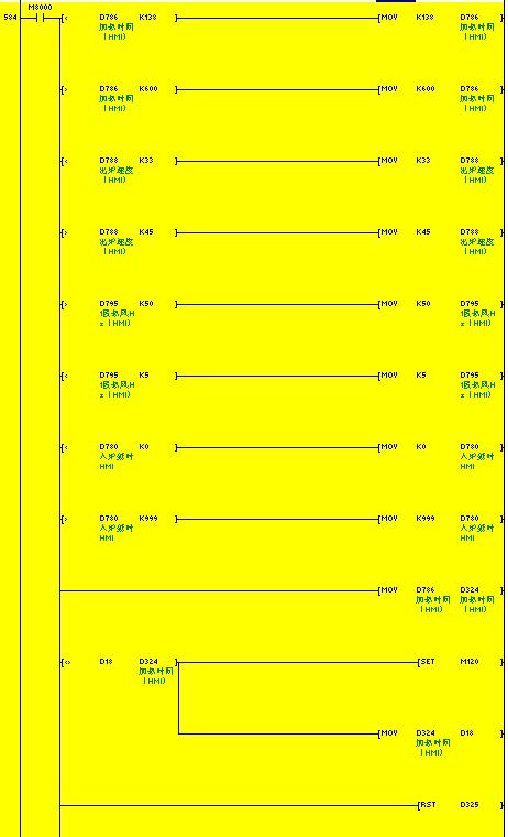 GPP程序段不超過24行,FX編寫程序段出現很多大于24行的現象,用GPP打開后程序段出現黃色顯示,如圖1所示,如果用GPP修改程序后轉換,24行后的程序就會出現丟失現象,