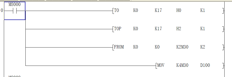如圖,模擬量2AD的模塊,當我RUN時,為什么FROM讀取的數值是不變的,只有重新RUN之后才會變數值,或者用M8013代替,數值也會變,為什么一個掃描周期之后,模塊不會FORM通道的數值?這是什么原因?如何解決?