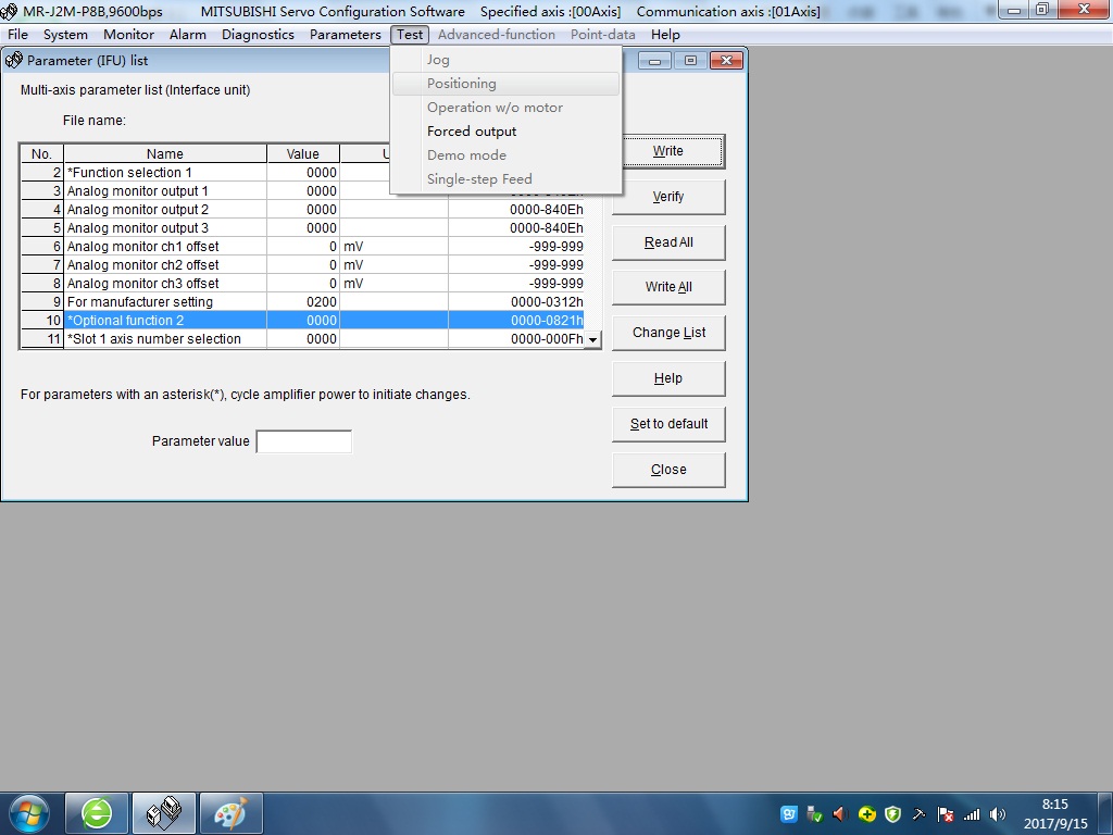 三菱伺服SETUP151E軟件在測試P8B時點動測試,定位按鈕是灰的,無法測試,求解?