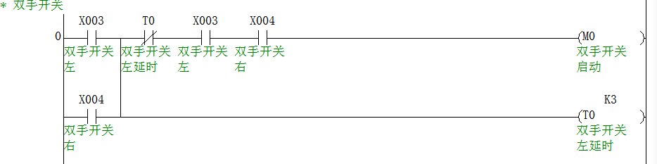 用plc程序就把兩個開關的IO點串起來用;如果點數不夠,就要用傳統的,把兩個按鈕串起來,俗稱雙手啟動,防止手被夾,盡量選擇平頭按鈕。