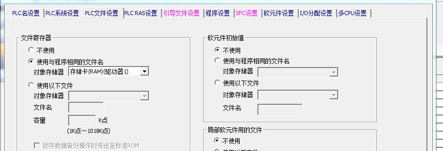 請問誰能知道在PLC參數設置時, 選擇使用與程序相同的文件名 “存儲卡RAM驅動器1”是什么意思? 如圖: