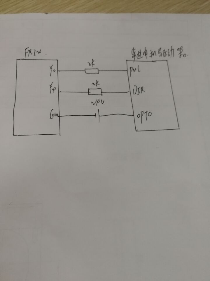 最近要改造一臺繞線機,遇到一個老式步進電機,幾個控制端子為 PUL、DIR,OPTO,我寫了一段簡單的程序(圖示)調(diào)試,PLC用的三菱FX3U型,發(fā)現(xiàn)一個問題,每次接通X17電機就抖動一下,不按照程序的意圖動作,程序里面參數(shù)我改了好多次都沒用,請問大神知道這個電機怎么用么,難道是我接線有問題,或者2K電阻不用加,還是什么原因。