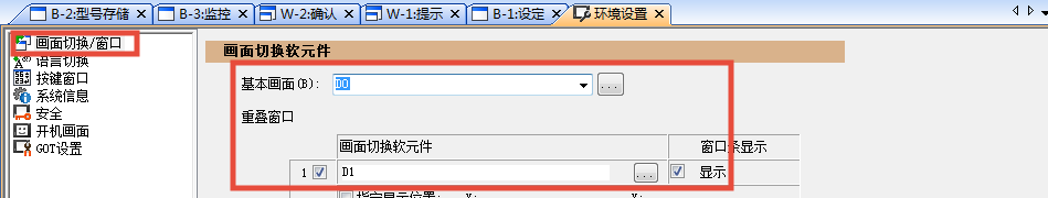 GOT畫面設計左側所有畫面中,有序號1  2  3 4...50等,查了查PLC使用一個寄存器可以體現任何畫面。比如用D0,顯示1號畫面就用mov k0 D1,顯示50號畫面就mov k50 D0。請問在GOT中如何設置實現的?GOT 1000