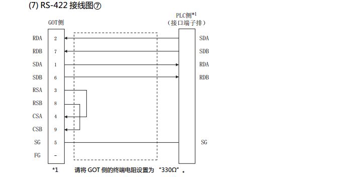 三菱觸摸屏你可以使用RS422的口,里面端子定義和接線如圖,接線完成后進行觸摸屏內部設置,通訊方式配置成RS-422/RS485就可以了,希望可以幫到您