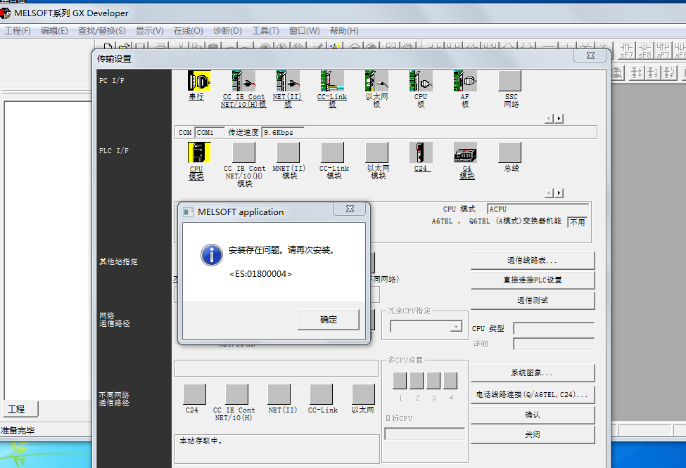 三菱GX Develper軟件讀取A系列的PLC時(shí)候,通信測(cè)試或者確認(rèn)都會(huì)彈出“安裝存在問(wèn)題,請(qǐng)?jiān)俅伟惭b”畫(huà)面,但是讀取Q系列和F系列沒(méi)有問(wèn)題,有大師會(huì)的指導(dǎo)一下