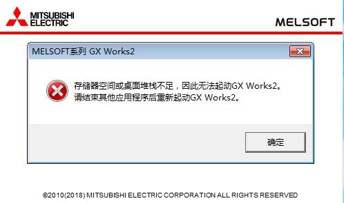 在安裝GX Works2后啟動,很多人會遇到圖上情況,出現(xiàn)存儲空間或桌面堆棧不足面無法啟動的現(xiàn)象,在網(wǎng)上可以搜索出一大堆解決的方法卻沒有得到解決,有重裝系統(tǒng)的,有下載0ld.dll文件的,其實最有效的方法就是這么處理的。
