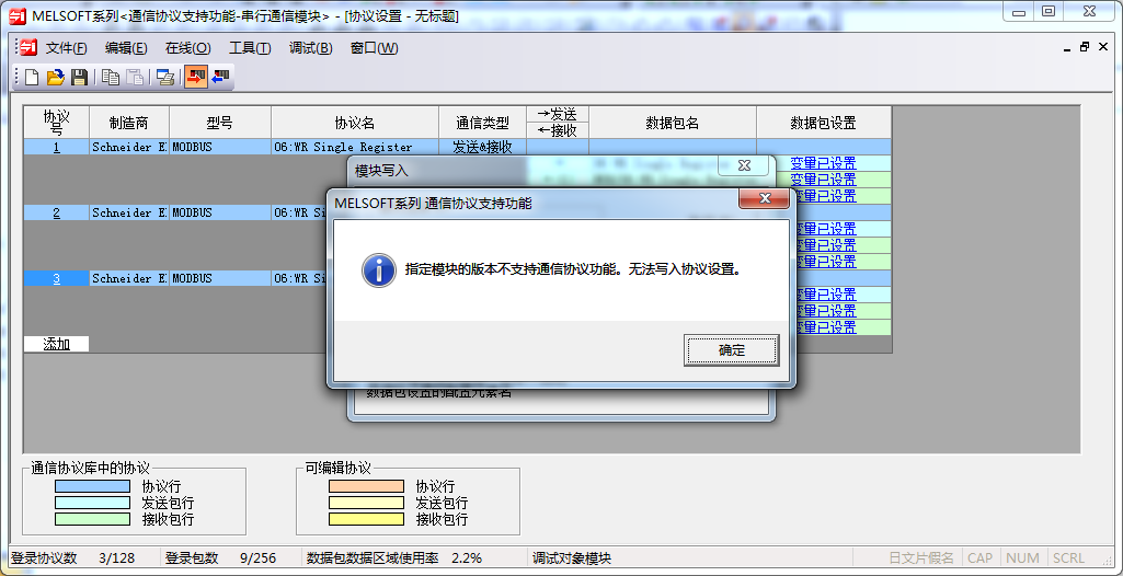 看你模塊的序列號,應該是05年產品。版本太低,不支持通訊協議支持功能