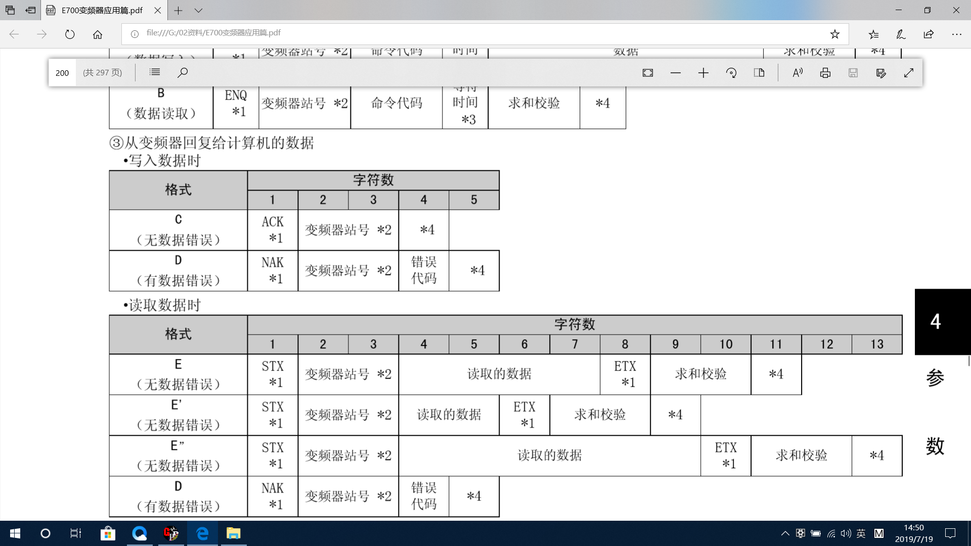 ENQ是三菱變頻器的專用協議通信指令的控制碼之一,命令代碼表示PLC命令變頻器干具體的事情(如啟動、停止、變向、變速,讀取轉速、電流數據等),等待時間表示,PLC發送通信數據給變頻器后,要求等多少時間后,變頻器發送應答信號,這個等待時間由變頻器的參數Pr.123設定,可以設為無等待時間。這樣PLC就少發一個數據。