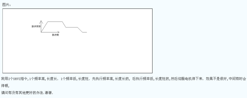 請(qǐng)教大家這PLSV和DRVI指令能否實(shí)現(xiàn)我所要求的精度0.01mm的多段速控制?如果不能,還有沒(méi)有其他辦法?謝謝!