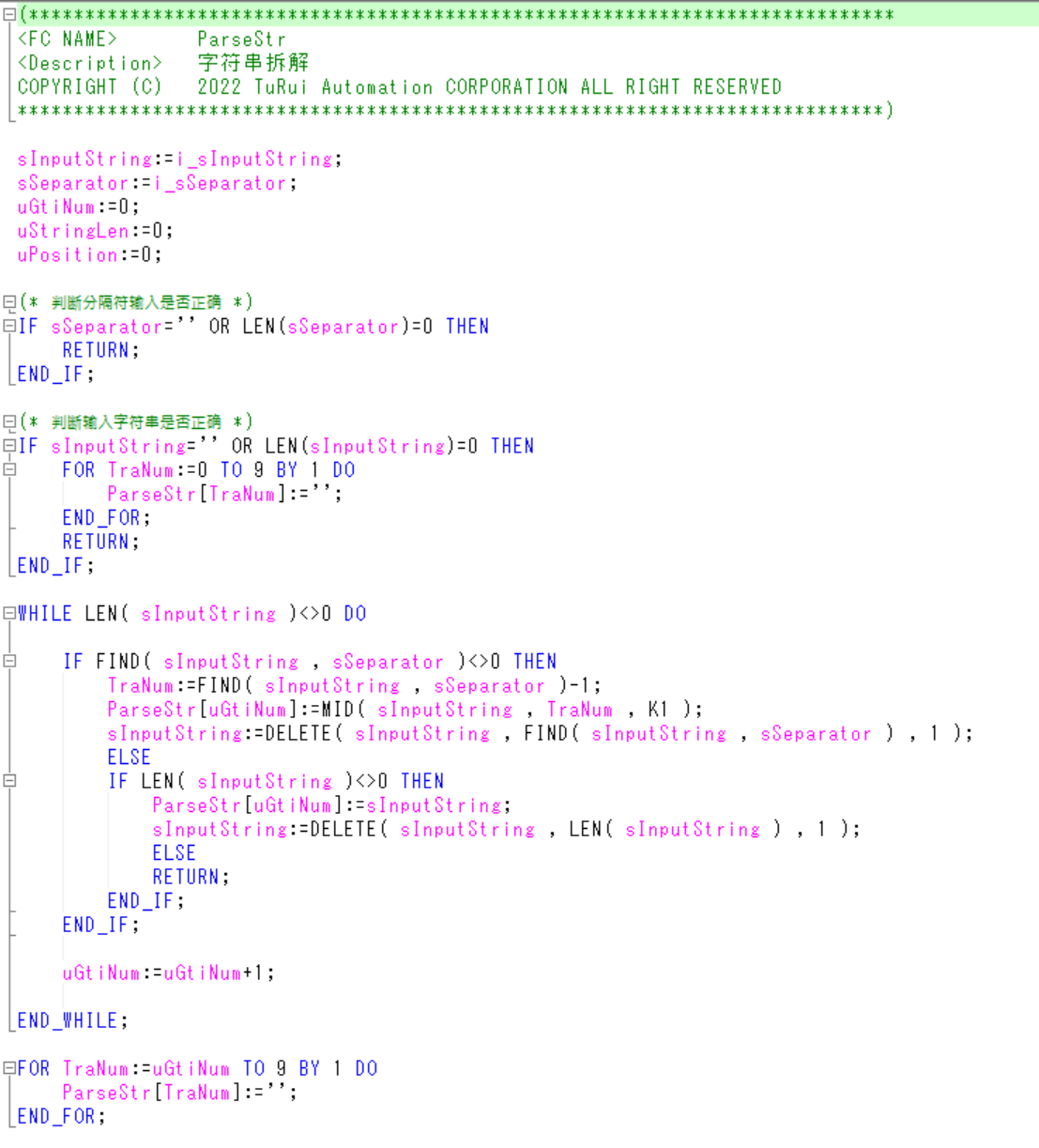 用5u做了一個(gè)套接字通信,接收到的數(shù)據(jù)是一串字符, 比如: S123,456,789E 應(yīng)該怎么把三個(gè)數(shù)據(jù)分別通過分隔符","提取分離出來?數(shù)據(jù)長度是不確定的,但有分隔符把數(shù)據(jù)分開, 請(qǐng)高手們不吝賜教!萬分感謝!!  |