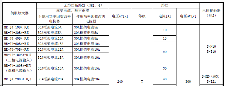 像是MR-J4-40B,有電抗器只要5A無熔絲開關,沒有電抗要10A無熔絲開關