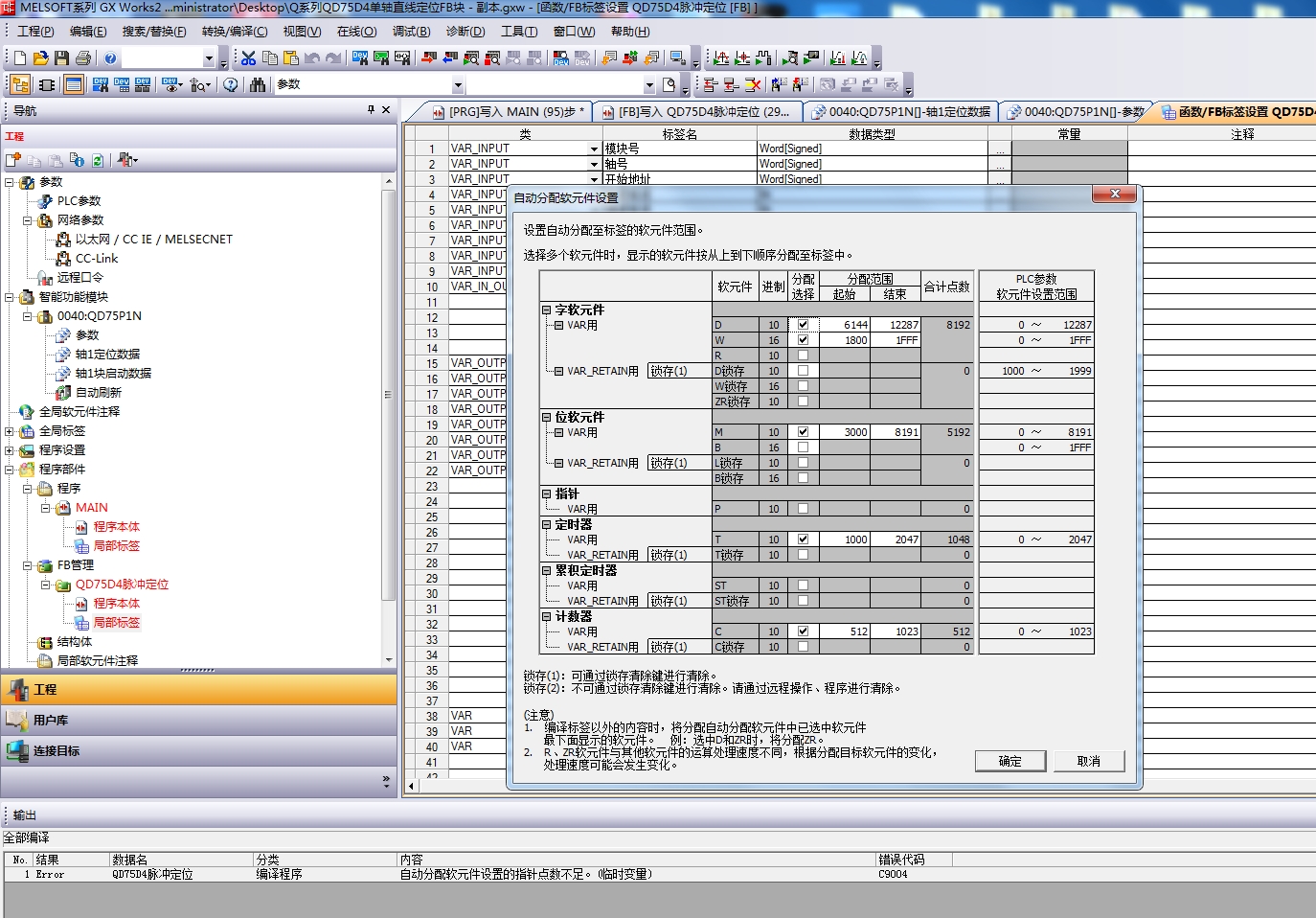 自動分配軟元件設置的指針點數不足。(臨時變量)    C9004
