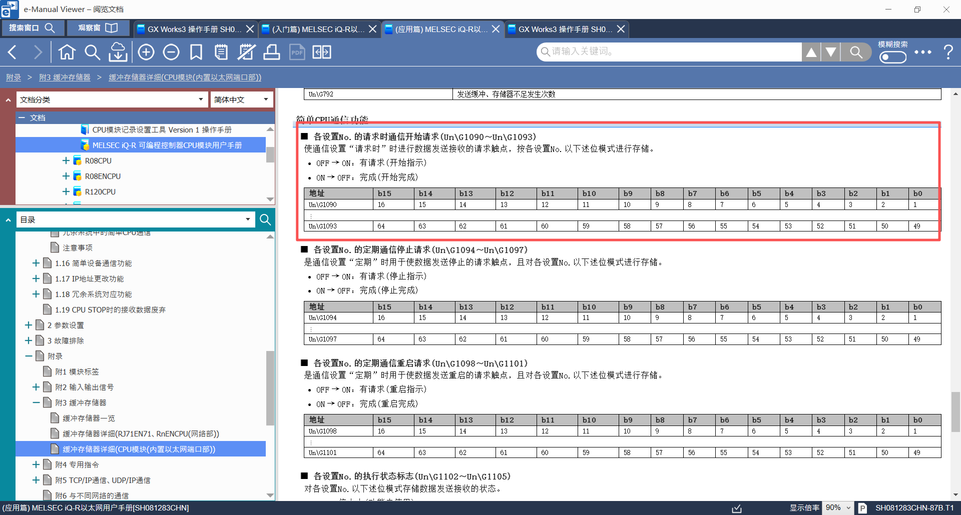 三菱R系列 本體簡單CPU 通信緩沖地址怎么使用, Un\G1090 中間n 是填什么數值,