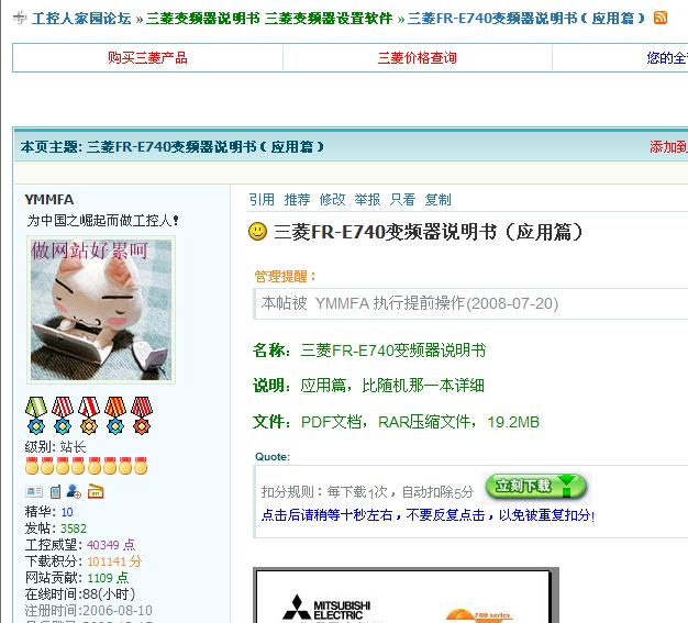 有哪位老師能給我個三菱FR-E740的使用說明書!謝謝!