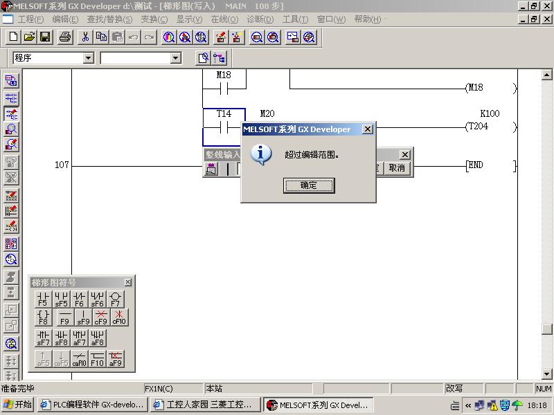 在GX Developer編輯梯形圖時還沒有輸入多少行,就出現“超過編輯范圍”的提示。怎么辦?設計的梯形圖還沒有輸入完。這可怎么辦?由于剛涉及PLC,還請大家多多指教,請請了
