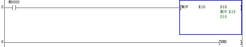 引用引用樓主czg1127于2009-08-17 09:12發表的 三菱PLC編程軟件的問題 :我裝的是三菱PLC8.52版本的編程軟件,我在原程序上把 mov K10 d10 中的k10 改為 k15,在按了確定以后,會在mov K10 d10 下面出現mov K15 d10語句,是不是編程軟件設值的問題啊