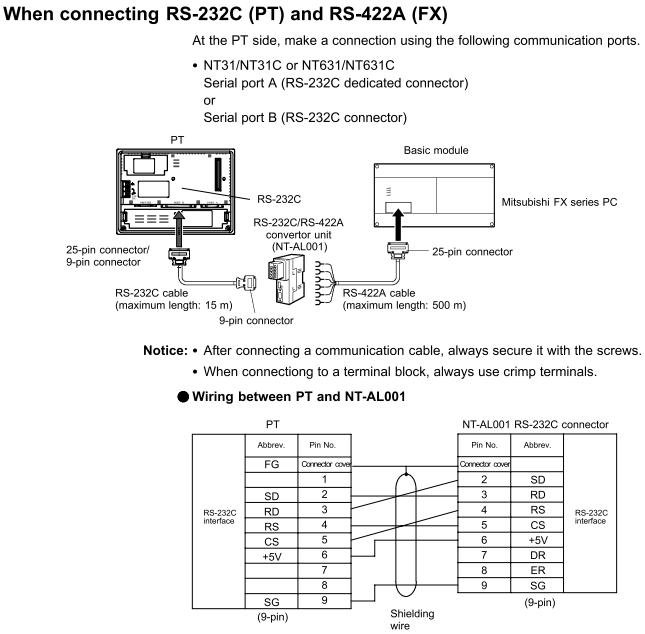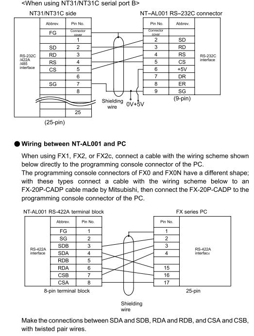 我用FX2n的編程電纜SC-09 9針對25針(RS422)線,再通過25針口連接OMRON NT31C的portA或portB口,參考OMRON公司