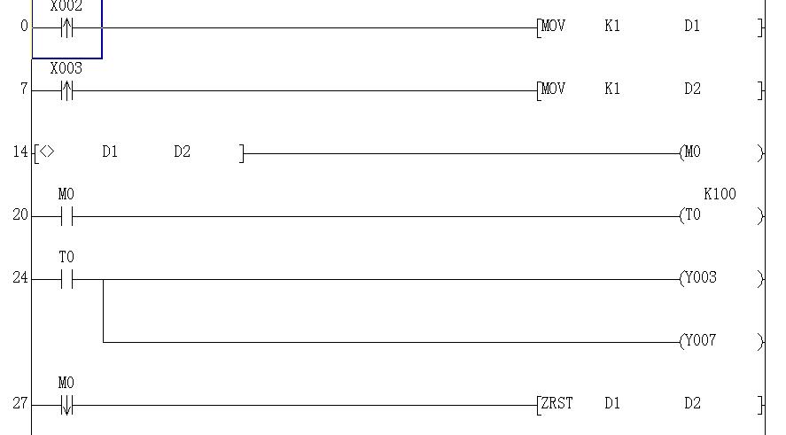 求助。。。如果一個物體在10秒內(nèi)沒有通過入門傳感器X2和X3之間的區(qū)域,則紅燈Y3常亮。而且喇叭Y7響。該怎么來做圖啊。請高手帶一下解釋。謝謝拉