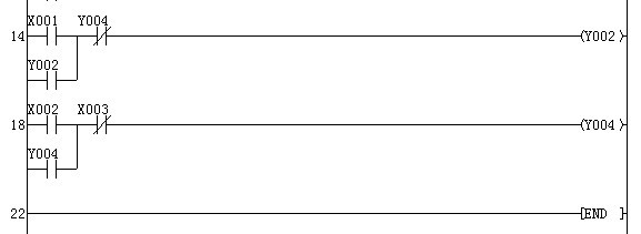 2.    按下X003,如果Y004有輸出則被斷開,按下X002且X003未按下,使Y004輸出。