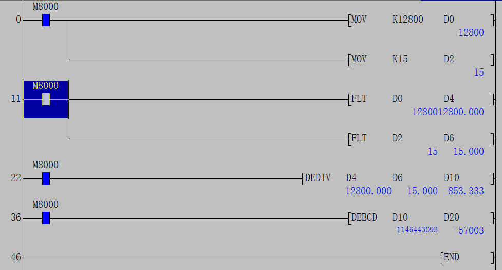 用INT這個指令,    M8000----------------------------INT   D10   D50