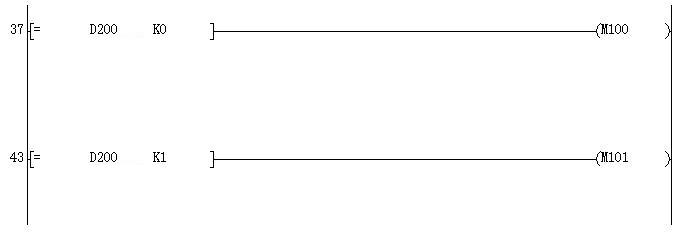 圖4D200=0時M100接通,D200=1時MI01接通。