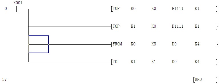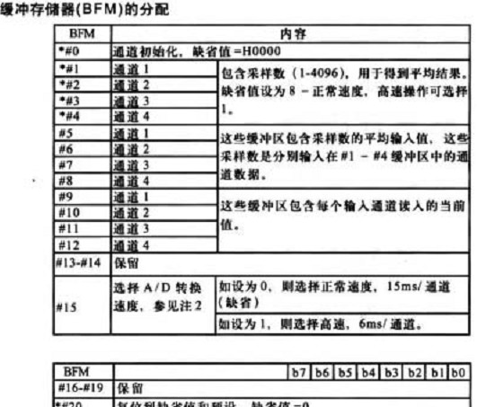 當x001接通時  第一行:H1111寫入  4AD模塊  表示4通道  4-20ma輸入