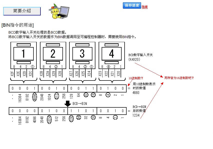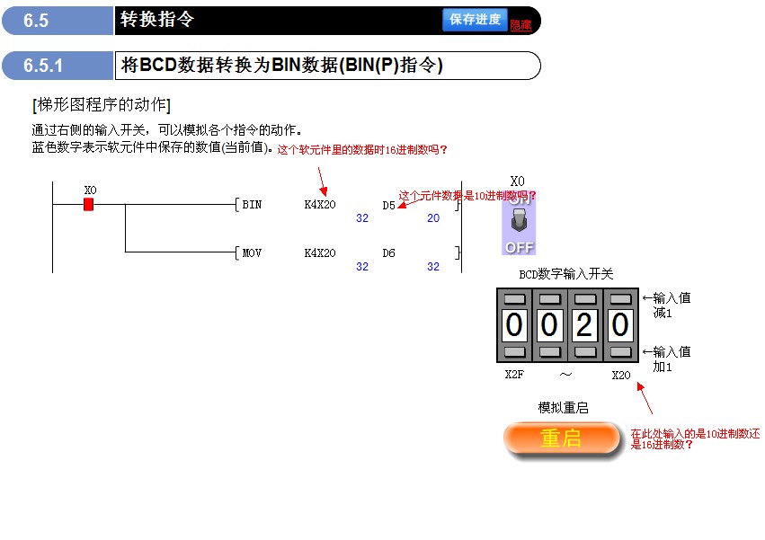 BIN K4X20 D0 ,K4X20 應該是四位二進制數表示的十進制數,即是BCD數據。這是個BCD轉換為BIN碼,并存到D0
