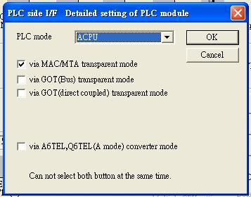 PLC VIA MAC/MTA TRANSPARENT MODE 未勾選