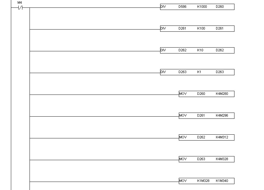 mov d260 k4m280就是把D260內(nèi)的數(shù)據(jù)轉(zhuǎn)移到M280-M295中,K4M280表示4X4=16即M280-M295