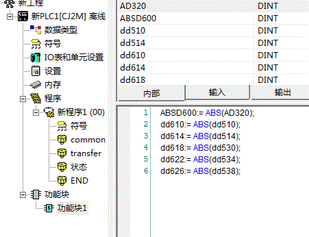 PLC的功能塊都差不多啊,歐姆龍功能塊可以用結(jié)構(gòu)文本和梯形圖編寫,你這個(gè)就是結(jié)構(gòu)文本寫的求絕對(duì)值