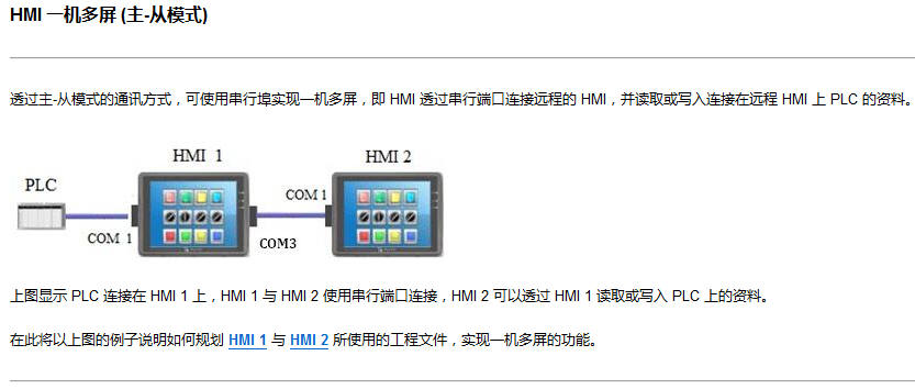 必須注意的是,HMI 一機多屏 (主-從模式)的主機必須用MT開頭有主從模式的機子。