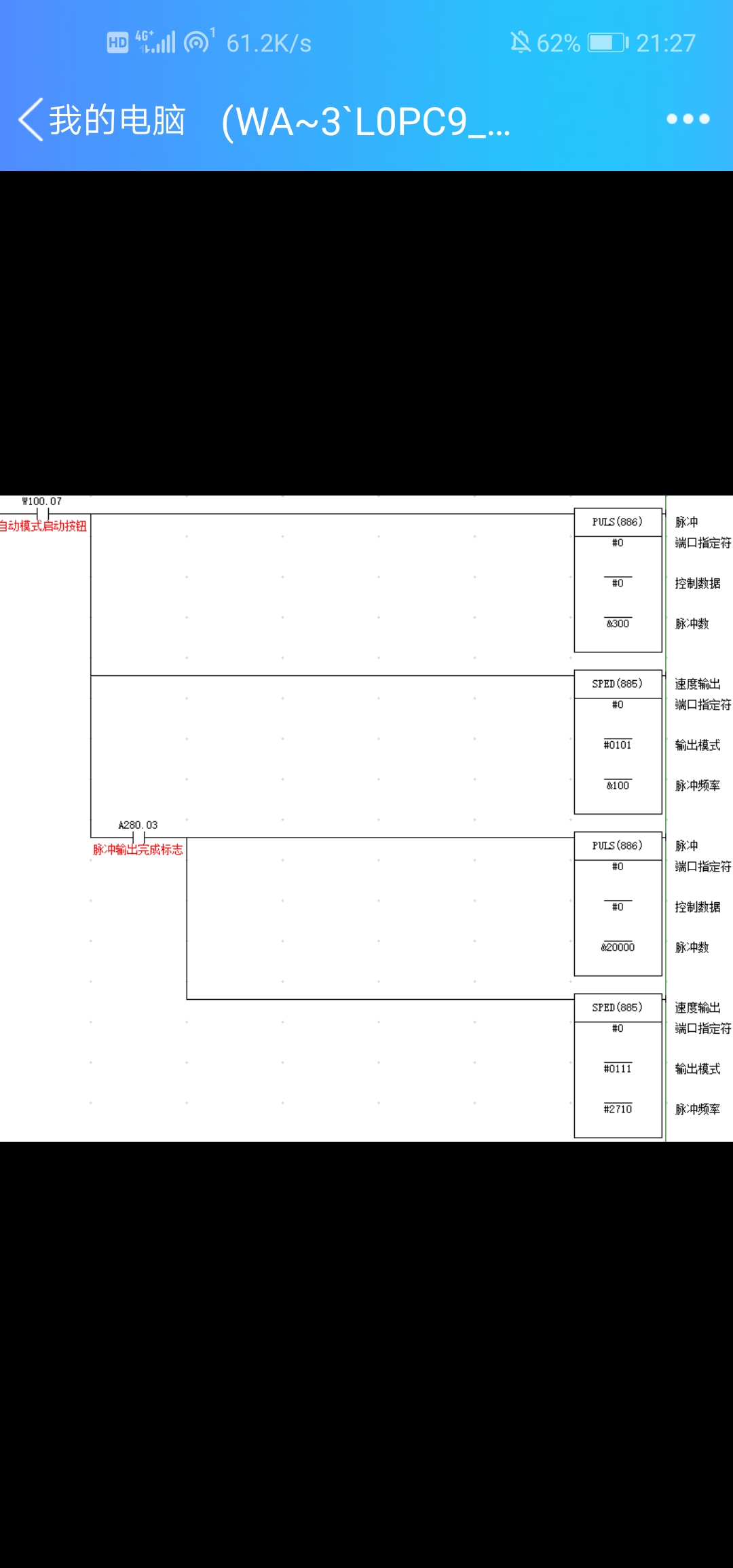 你這么寫是做啥?上面300完成的時候接通了A280.03,執行下一個20000的時候又會被復位。一般用A280.03都是取上升沿去置位W。 而且歐姆龍里面PULS只需要用上升沿接通一下就好,不需要保持,按照你的程序邏輯:執行完300,應該是馬上執行20000,但實際使用不確定會不會有問題 |