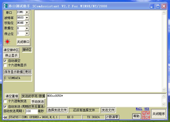 打開串口調試助手V2發現有串口可用了,就發送@00SC0050*沒什反應?