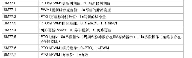 MOVW    16#C3  SMB77    //允許輸出脈沖,PWM輸出,同步更新,時基為US,允許更新脈寬和周期,