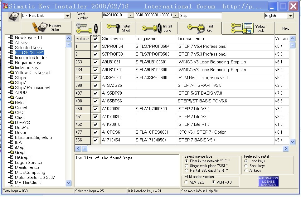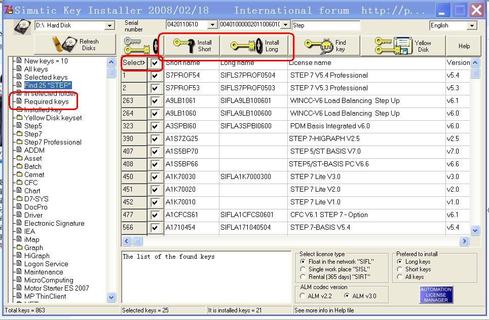 其實(shí)“required keys”選項(xiàng)就是軟件自動(dòng)檢測(cè)出來(lái)的、你電腦上裝了的軟件還沒(méi)有授權(quán)的、所有軟件的所需授權(quán); 所以可以直接選擇“required keys”后,安裝顯示出來(lái)的所有授權(quán)即可(用install short 和 install long鍵)。 ![]() |