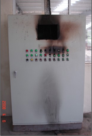 比這大一點的配電柜,燒了一半我就看過,是7年前的配電柜,裝在蝕刻室旁邊,線老化了,結果漏電了,(因為蝕刻室有很多強腐蝕性的化學物品),結果著火了,不過想不通的是,漏電開關不跳(線都燒到冒火花了),不只是一個漏電開關,是3個,從配電房,到現場配機器電柜,到這個蝕刻室配電柜,三個漏電開關都不跳,夠強的(郁悶)!漏電開關是富士的(小日本難道就這么不可靠?)呵呵!